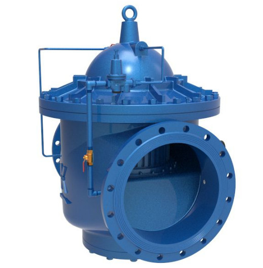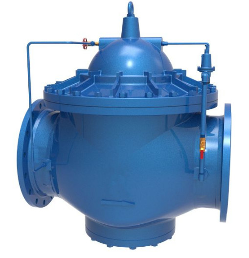 當閥門從進口端給水時,水流過針閥進入主閥控制室,出口壓力通過導管作用到導閥上。當出口壓力高于導閥彈簧設定值時,導閥關閉。控制室停止排水,此時主閥控制室內壓力高升關閉主閥,出口壓力不再升高。當閥門出口壓力下降到導閥彈簧設定壓力時,導閥開啟,控制室向下游排水。由于導閥系統排水量大于針閥的進水量,主閥控制室壓力下降,進口壓力使主閥開啟。在穩定狀態下,控制室進水、排水相同,主閥開度不變,減壓效果明顯。 該閥性能穩定、安全可靠、安裝調節方便,使用壽命長。可用于生活給水、消防系統及工業給水系統。