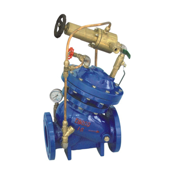 本產(chǎn)品由主閥和調(diào)節(jié)閥及接管系統(tǒng)組成,閥體采用直流式閥體,主閥控制室為膜片式或活塞式的雙控制室結(jié)構(gòu),控制室比一般水力控制閥增加了一個(gè),增加了對(duì)主閥的控制功能,實(shí)現(xiàn)了對(duì)水泵出口的緩慢開啟、全開、緩閉、截止等多功能控制,實(shí)現(xiàn)了一個(gè)閥門、一次調(diào)節(jié)對(duì)水泵出口的多功能控制。 本產(chǎn)品的接管系統(tǒng)采用調(diào)節(jié)閥控制,通過設(shè)定調(diào)節(jié)閥的開度,可方便實(shí)現(xiàn)需要的各項(xiàng)控制參數(shù),如主閥的開啟速度、緩閉速度等等。