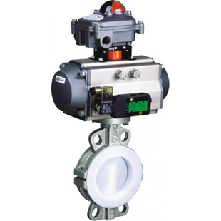 D671F46氣動對夾式襯氟蝶閥采用帶有球 形密封表面的襯氟塑料包襯蝶板,配以閥座基部的硅橡膠襯墊調節閥門的密封性能;該閥門操作輕便,嚴密的密封性能,超長的使用壽 命;可作快速切斷或調節流量之用。