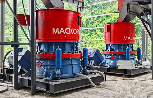 電機經由大小齒輪帶動偏心套組件旋轉,由偏心套組件迫使主軸以懸掛點為中心,繞機器中心線旋擺運動。動錐的運行軌跡看起來是在破碎腔內來回擺動,同時緩慢的旋轉。物料被擺動的動錐擠壓破碎;